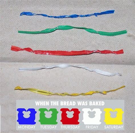 What The Colors On Bread Twist Ties Really Mean, The loaves of bread at your supermarket are color coded so employees know when to replace the bread from the shelves here s what the bread color twist ties mean. Fact Check Bread Tag Code Snopes Com, Can you tell which day a loaf of bread was baked by the color of its i looked in the grocery store and the bread wrappers do have different colored twist ties. Color Coded Plastic Ties Tell You Day Your Bread Was Baked, Turns out that the plastic tags and twists on loafs of bread aren t just for looking pretty they are coded to indicate what day the bread was baked on writes wise.